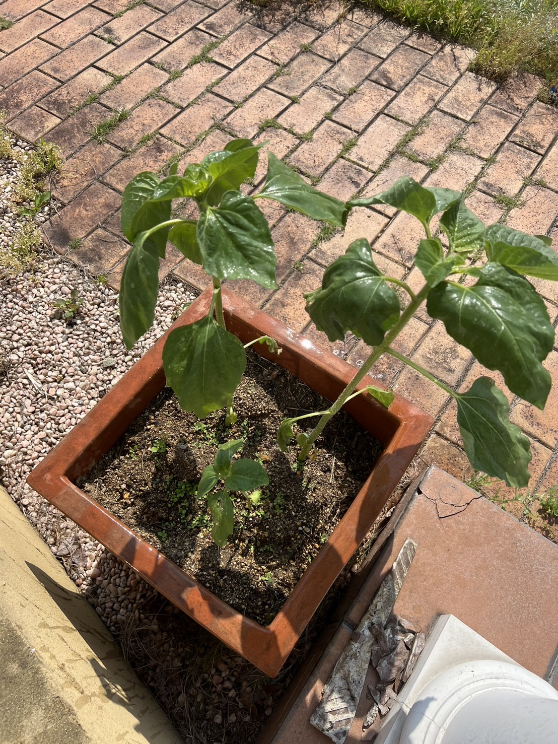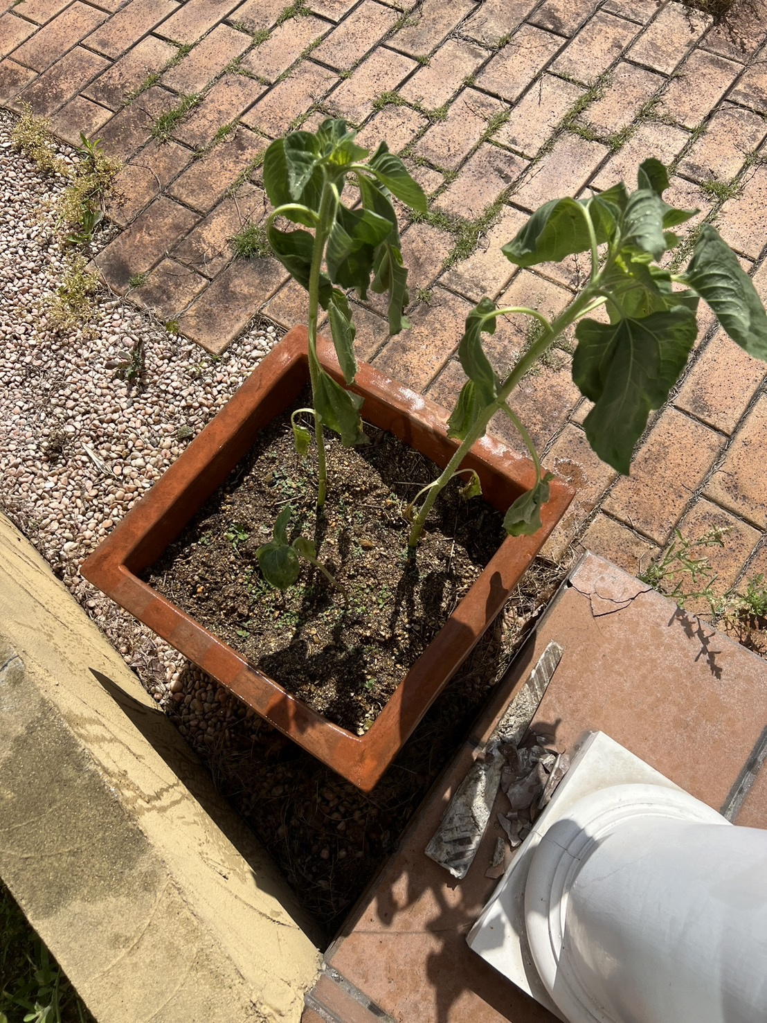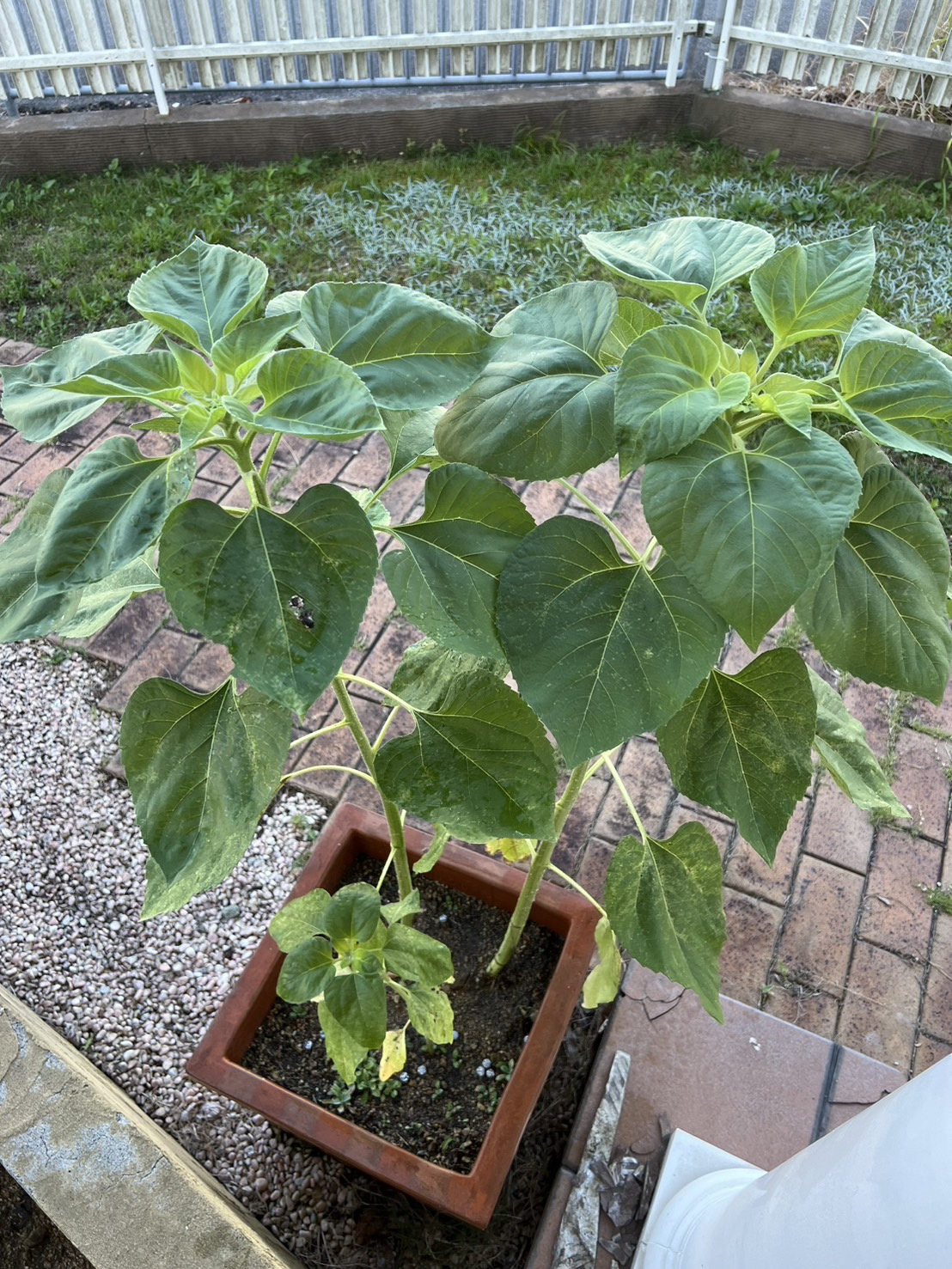 5月25日 水をあげようと思ったらシナシナ、そして下のほうの葉が枯れていました。調べると水分か肥料不足のようです。ヒマワリはたっぷりと水分を必要とするようです!土が乾いたらたっぷり水やりするといいみたいです!