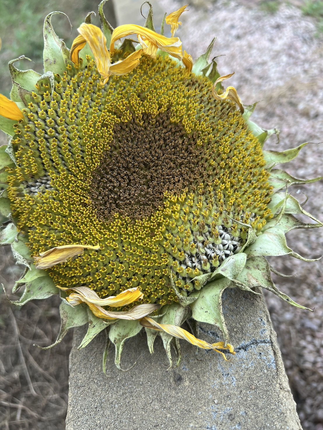 ひまわりが枯れてカラカラになったので根っこから抜きました。